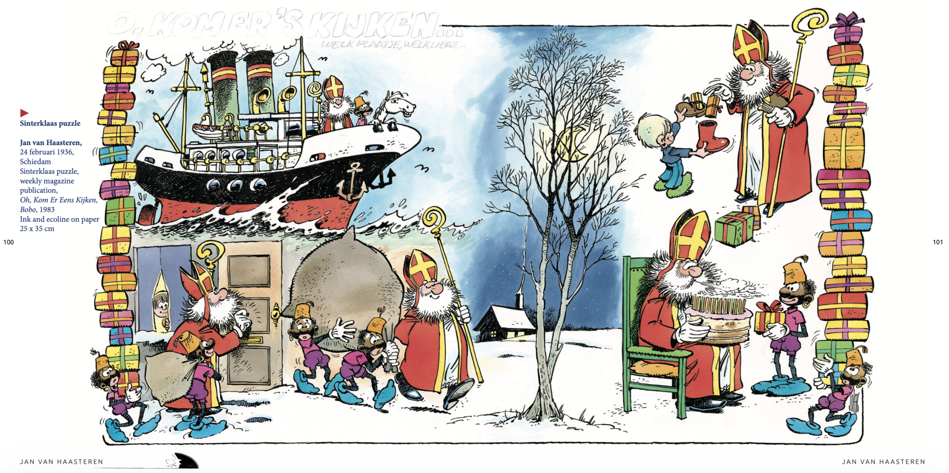 Van de tiende tentoonstelling in het MoCA, ’JAN VAN HAASTEREN - The Missing Pieces of a Comic Artist', is een rijk geïllustreerde genummerde catalogus, met linnen rug met zilverfolie opdruk, samengesteld. De schutbladen zijn bedrukt in kleur.